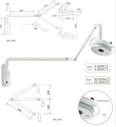 4.High-Performance Lighting: 180,000 lux illuminance (1m distance); ≥1200mm depth; 100–300mm adjustable spot.